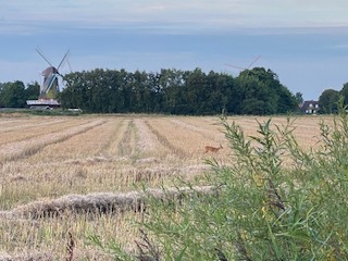 Blick zur Mühle, auch Rehe fühlen sich wohl.